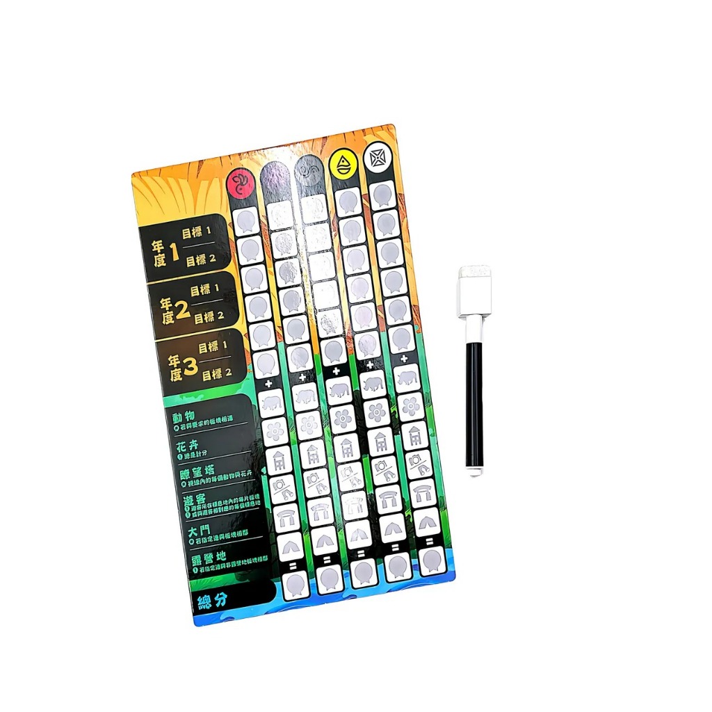 《野生動物園》 持續三個季節,每個季節為每位玩家提供6-9個新的板塊來擴展他們的公園。滿足季節目標的玩家將獲得獎勵積分,而第二名和第三名將獲得較少的積分。遊戲結束時,每位玩家將根據其公園中每個板塊是否滿足其棲息地需求來計分。積分最高的玩家將獲得勝利!