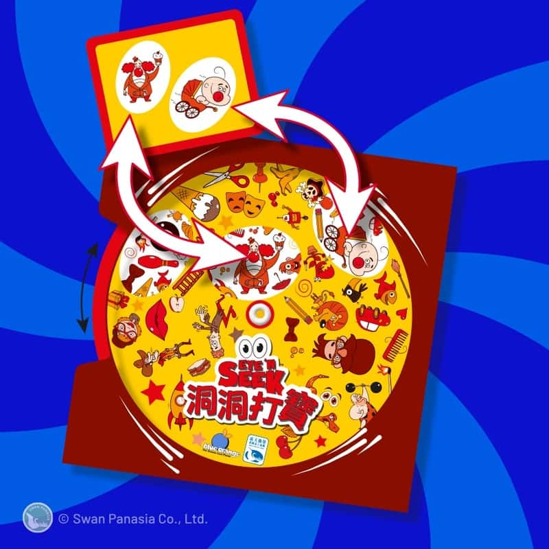 翻開一張紙牌,快速轉動轉盤,從視窗找到與紙牌相同的圖案!