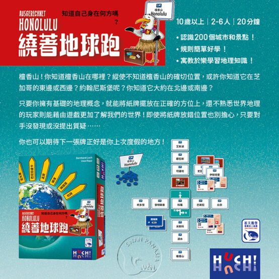 只要你擁有基礎的地理概念,就能將紙牌擺放在正確的方位上,還不熟悉世界地理的玩家則能藉由遊戲更加了解我們的世界!