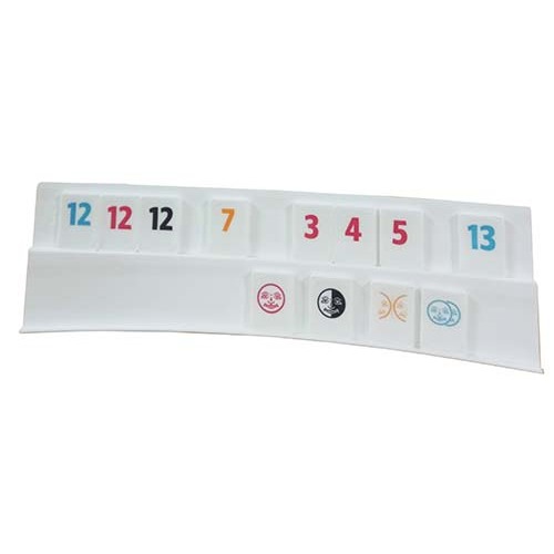 配件: 112塊塑膠拉密牌(含8塊百搭)、4個牌架、説明書